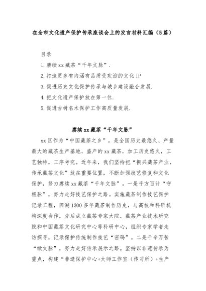 【七哥公文】2024年:(5篇)在全市文化遗产保护传承座谈会上的发言材料汇编+更多免费公文+VX:QiGeGongWen2024