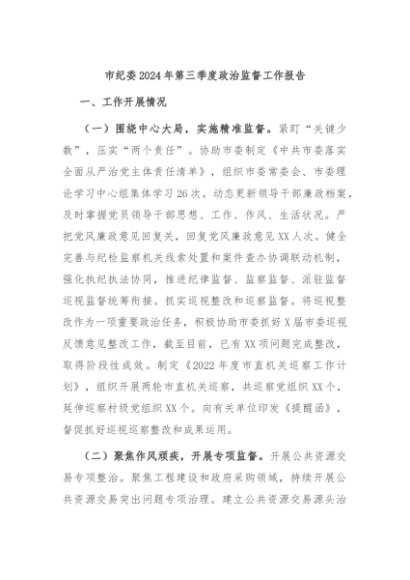 / 【七哥公文】2024年:市纪委2024年第三季度政治监督工作报告+更多免费公文+VX:QiGeGongWen2024
