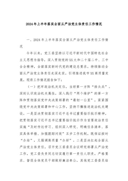 / 【七哥公文】2024年:2024年上半年落实全面从严治党主体责任工作情况+更多免费公文+VX:QiGeGongWen2024