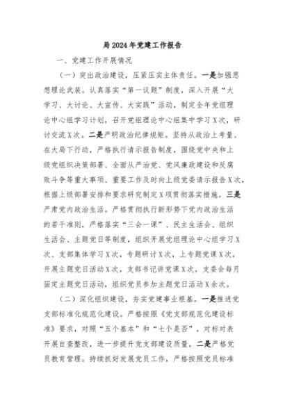 / 【七哥公文】2024年:局2024年党建工作报告+更多免费公文+VX:QiGeGongWen2024