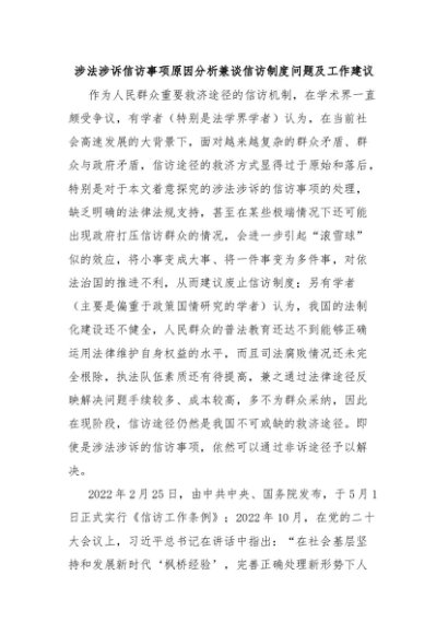 【七哥公文】2024年:涉法涉诉信访事项原因分析兼谈信访制度问题及工作建议+更多免费公文+VX:QiGeGongWen2024