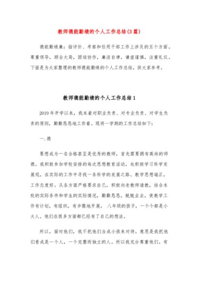 / 【七哥公文】2024年:教师德能勤绩的个人工作总结3篇+更多免费公文+VX:QiGeGongWen2024