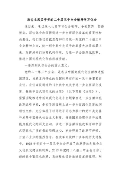 / 【七哥公文】2024年:政协主席关于党的二十届三中全会精神学习体会+更多免费公文+VX:QiGeGongWen2024
