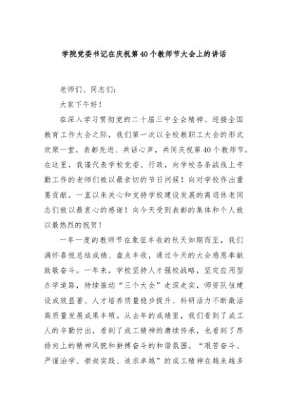/ 【七哥公文】2024年:学院党委书记在庆祝第40个教师节大会上的讲话+更多免费公文+VX:QiGeGongWen2024