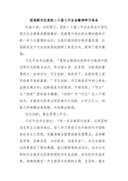/ 【七哥公文】2024年:团委副书记党的二十届三中全会精神学习体会+更多免费公文+VX:QiGeGongWen2024