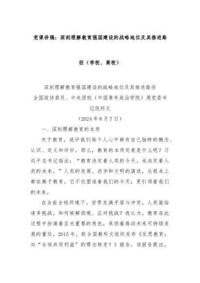 【七哥公文】2024年:党课讲稿:深刻理解教育强国建设的战略地位及其推进路径(学校、高校)+更多免费公文+VX:QiGeGongWen2024