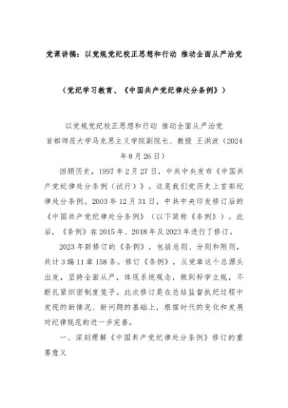 【七哥公文】2024年:党课讲稿:以党规党纪校正思想和行动 推动全面从严治党(党纪学习教育、《中国共产党纪律处分条例》)+更多免费公文+VX:QiGeGongWen2024