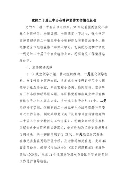 / 【七哥公文】2024年:党的二十届三中全会精神宣传贯彻情况报告+更多免费公文+VX:QiGeGongWen2024
