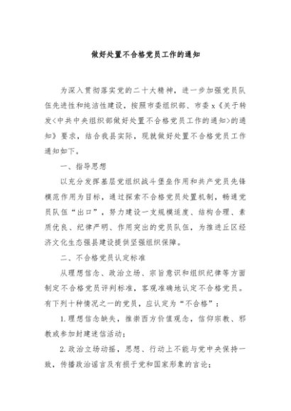 / 【七哥公文】2024年:做好处置不合格党员工作的通知+更多免费公文+VX:QiGeGongWen2024