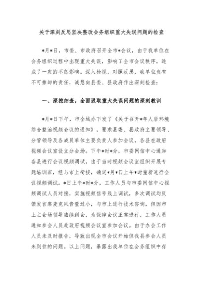 / 【七哥公文】2024年:关于深刻反思坚决整改会务组织重大失误问题的检查+更多免费公文+VX:QiGeGongWen2024