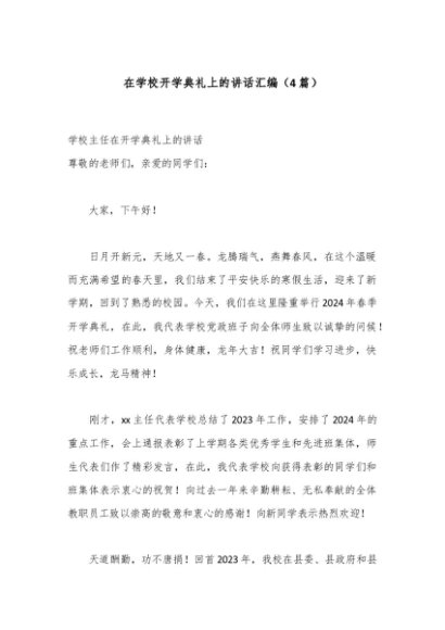/ 【七哥公文】2024年:4篇在学校开学典礼上的讲话汇编+更多免费公文+VX:QiGeGongWen2024