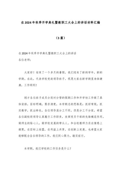 【七哥公文】2024年:3篇在2024年秋季开学典礼暨教职工大会上的讲话材料汇编+更多免费公文+VX:QiGeGongWen2024