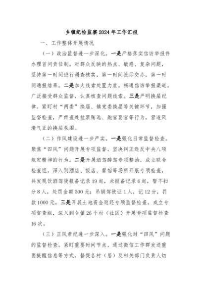 / 【七哥公文】2024年:乡镇纪检监察2024年工作汇报+更多免费公文+VX:QiGeGongWen2024