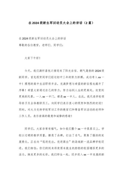 / 【七哥公文】2024年:2篇在2024级新生军训动员大会上的讲话+更多免费公文+VX:QiGeGongWen2024