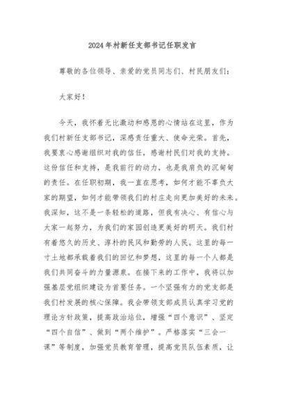 / 【七哥公文】2024年:2024年村新任支部书记任职发言+更多免费公文+VX:QiGeGongWen2024