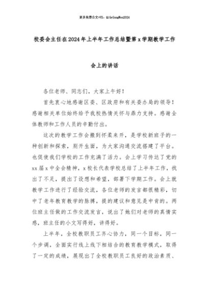 【七哥公文】2024年:校委会主任在2024年上半年工作总结暨第x学期教学工作会上的讲话+更多免费公文+VX:QiGeGongWen2024