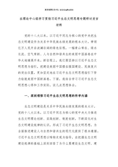 【七哥公文】2024年:在理论中心组学习贯彻习近平生态文明思想专题研讨发言材料+更多免费公文+VX:QiGeGongWen2024