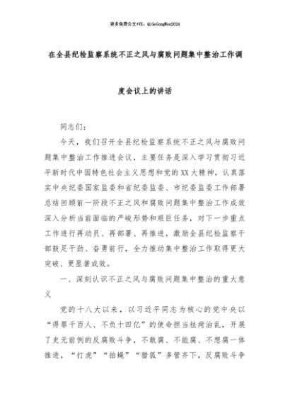 【七哥公文】2024年:在全县纪检监察系统不正之风与腐败问题集中整治工作调度会议上的讲话+更多免费公文+VX:QiGeGongWen2024