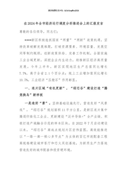【七哥公文】2024年:在2024年全市经济运行调度分析推进会上的汇报发言+更多免费公文+VX:QiGeGongWen2024