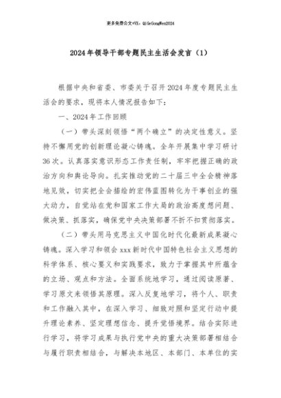 / 【七哥公文】2024年:2024年领导干部专题民主生活会发言(1)+更多免费公文+VX:QiGeGongWen2024