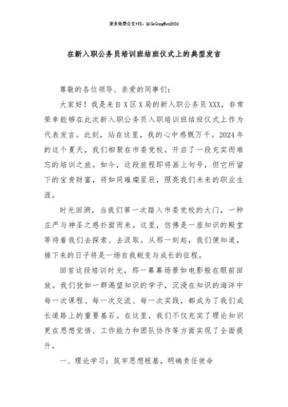 / 【七哥公文】2024年:在新入职公务员培训班结班仪式上的典型发言+更多免费公文+VX:QiGeGongWen2024