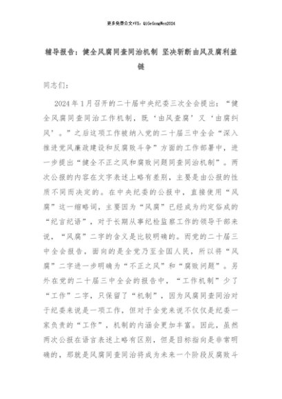 【七哥公文】2024年:辅导报告:健全风腐同查同治机制 坚决斩断由风及腐利益链+更多免费公文+VX:QiGeGongWen2024