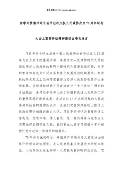 【七哥公文】2024年:在学习贯彻习近平总书记在庆祝人民政协成立75周年纪念大会上重要讲话精神座谈会委员发言+更多免费公文+VX:QiGeGongWen2024