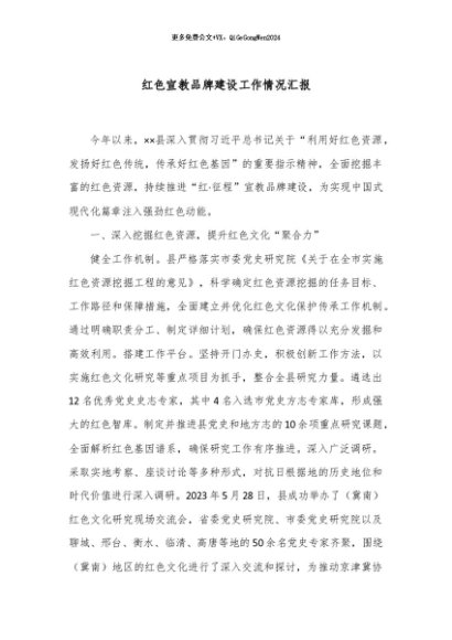 / 【七哥公文】2024年:红色宣教品牌建设工作情况汇报+更多免费公文+VX:QiGeGongWen2024