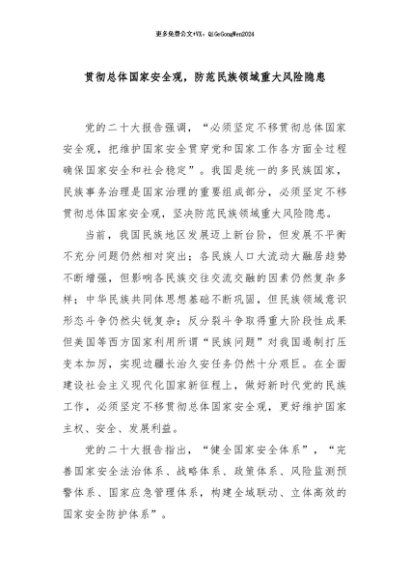 / 【七哥公文】2024年:贯彻总体国家安全观,防范民族领域重大风险隐患+更多免费公文+VX:QiGeGongWen2024