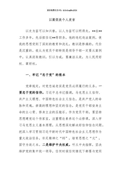 / 【七哥公文】2024年:以案促改个人发言+更多免费公文+VX:QiGeGongWen2024