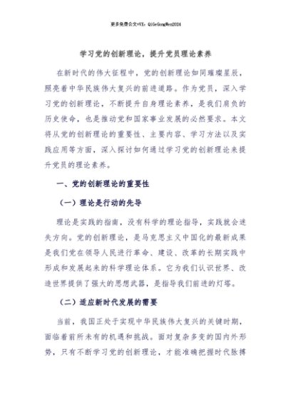 【七哥公文】2024年:学习党的创新理论,提升党员理论素养+更多免费公文+VX:QiGeGongWen2024