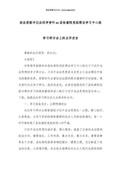 【七哥公文】2024年:政法委副书记在巡学旁听xx县检察院党组理论学习中心组学习研讨会上的点评发言+更多免费公文+VX:QiGeGongWen2024