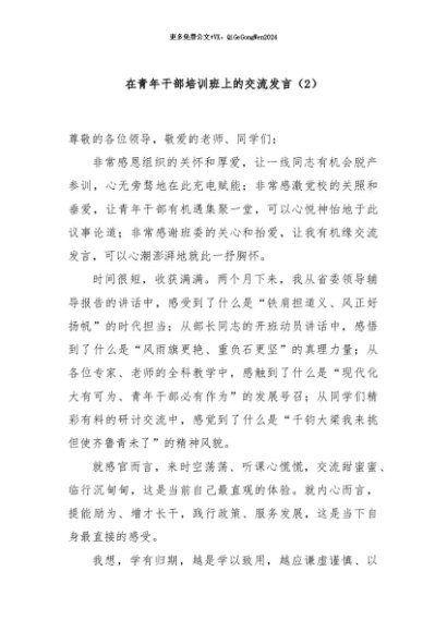 / 【七哥公文】2024年:在青年干部培训班上的交流发言(2)+更多免费公文+VX:QiGeGongWen2024