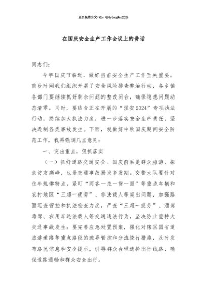 / 【七哥公文】2024年:在国庆安全生产工作会议上的讲话+更多免费公文+VX:QiGeGongWen2024