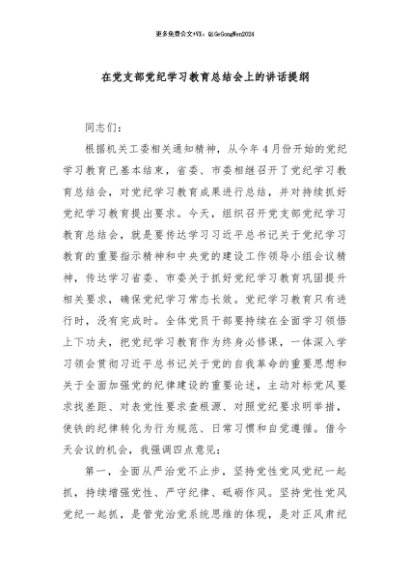 / 【七哥公文】2024年:在党支部党纪学习教育总结会上的讲话提纲+更多免费公文+VX:QiGeGongWen2024