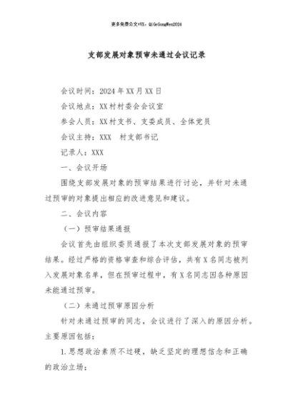 / 【七哥公文】2024年:支部发展对象预审未通过会议记录+更多免费公文+VX:QiGeGongWen2024