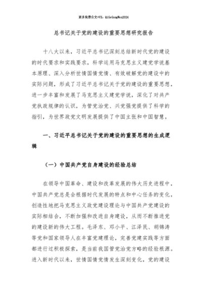 / 【七哥公文】2024年:总书记关于党的建设的重要思想研究报告+更多免费公文+VX:QiGeGongWen2024