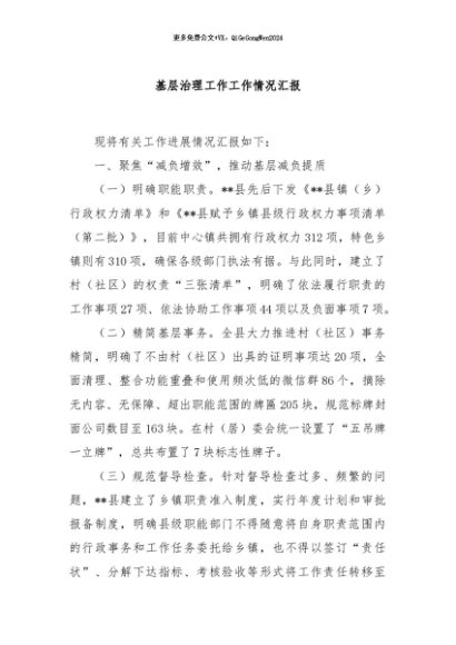 / 【七哥公文】2024年:基层治理工作工作情况汇报+更多免费公文+VX:QiGeGongWen2024