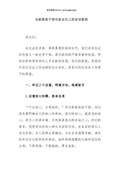 / 【七哥公文】2024年:在新提拔干部任前会议上的谈话提纲+更多免费公文+VX:QiGeGongWen2024