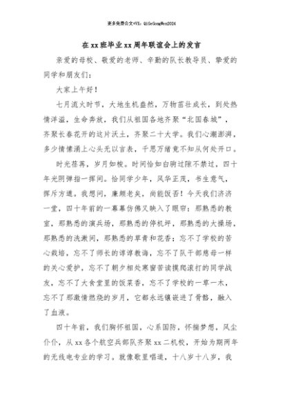 / 【七哥公文】2024年:在xx班毕业xx周年联谊会上的发言+更多免费公文+VX:QiGeGongWen2024