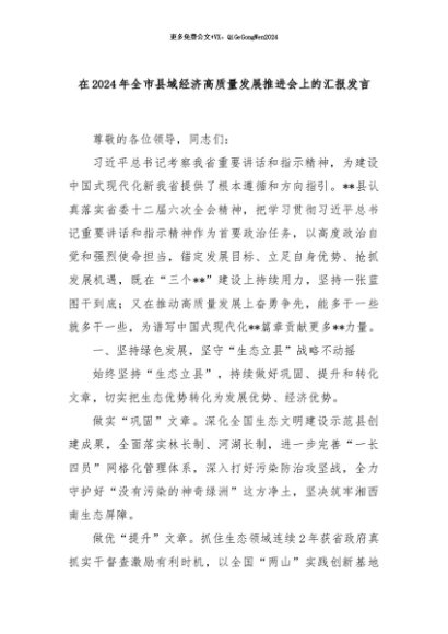 【七哥公文】2024年:在2024年全市县域经济高质量发展推进会上的汇报发言+更多免费公文+VX:QiGeGongWen2024
