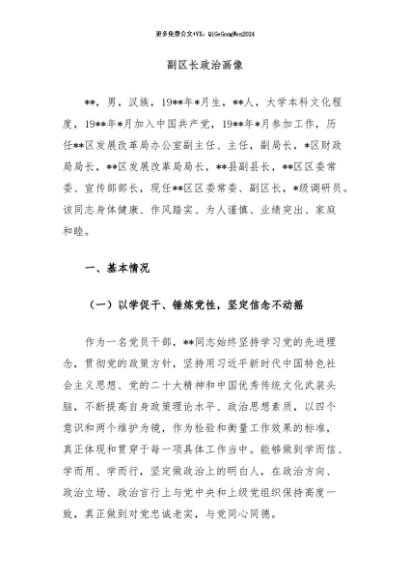 【七哥公文】2024年:副区长政治画像+更多免费公文+VX:QiGeGongWen2024
