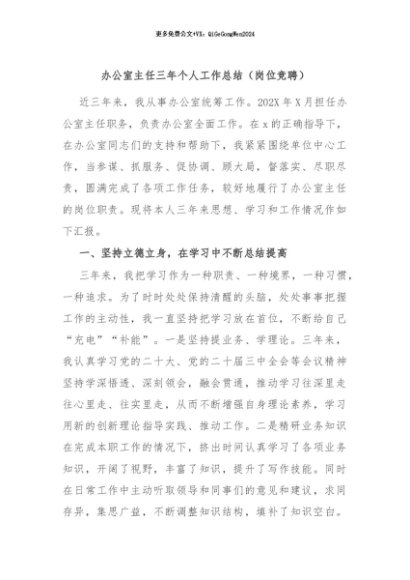 / 【七哥公文】2024年:办公室主任三年个人工作总结(岗位竞聘)+更多免费公文+VX:QiGeGongWen2024