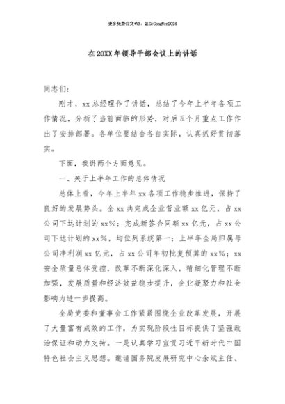 【七哥公文】2024年:在20XX年领导干部会议上的讲话+更多免费公文+VX:QiGeGongWen2024