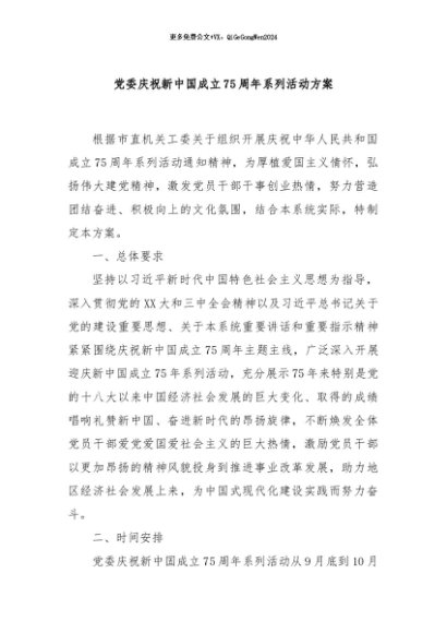 / 【七哥公文】2024年:党委庆祝新中国成立75周年系列活动方案+更多免费公文+VX:QiGeGongWen2024