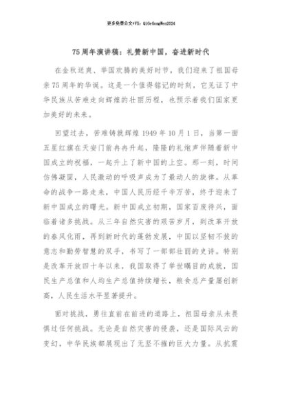 / 【七哥公文】2024年:75周年演讲稿:礼赞新中国,奋进新时代+更多免费公文+VX:QiGeGongWen2024