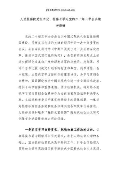 【七哥公文】2024年:人民检察院党组书记、检察长学习党的二十届三中全会精神感悟+更多免费公文+VX:QiGeGongWen2024