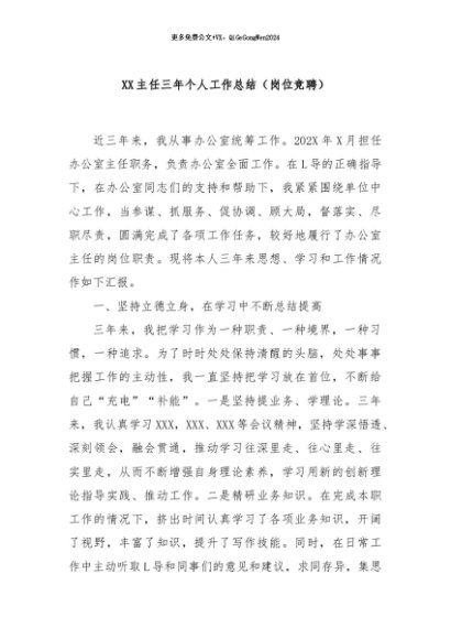 / 【七哥公文】2024年:XX主任三年个人工作总结(岗位竞聘)+更多免费公文+VX:QiGeGongWen2024