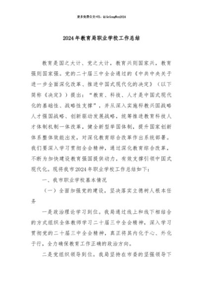 / 【七哥公文】2024年:2024年教育局职业学校工作总结+更多免费公文+VX:QiGeGongWen2024