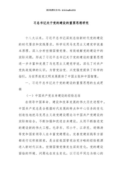 / 【七哥公文】2024年:习总书记关于党的建设的重要思想研究+更多免费公文+VX:QiGeGongWen2024